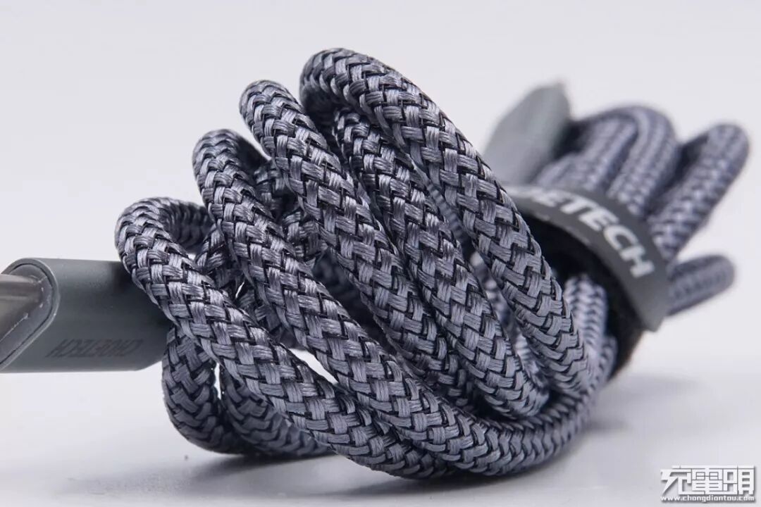 CHOETECH迪奥科CC数据线整体呈银灰色,线身编织材质,两端头金属材质,配有一根黑色魔术扎带,方便捆扎收纳。