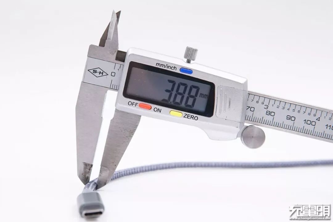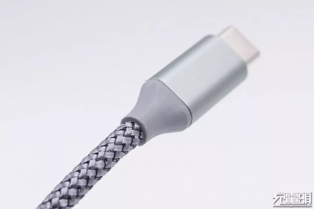 这根CHOETECH迪奥科CC数据线非常结实,线身外衣使用银灰色的尼龙丝与黑色鱼线成股交叉编织,接口处使用铝合金外壳封装并在表面进行喷砂处理,手感细腻同时方便插拔。使用ChargerLAB Power-Z KT001检测发现,其电力传输能力为20V/5A,数据传输为USB2.0,实际充电测试显示该线缆支持100W充电。