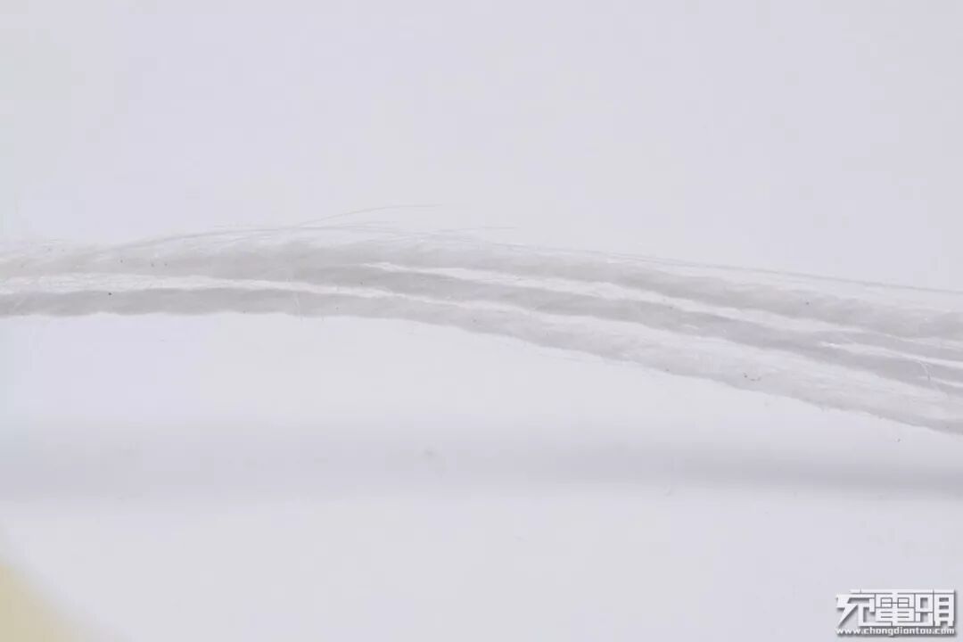 传统的编织线采用的编织方式是纤维丝直接平铺排列编织,如上面这根黑色的编织线就是普通的平铺排列编织。这类的编织方式当出现磨损或者损坏时,纤维丝将出现散丝的现象,线身将会变得非常的毛躁。