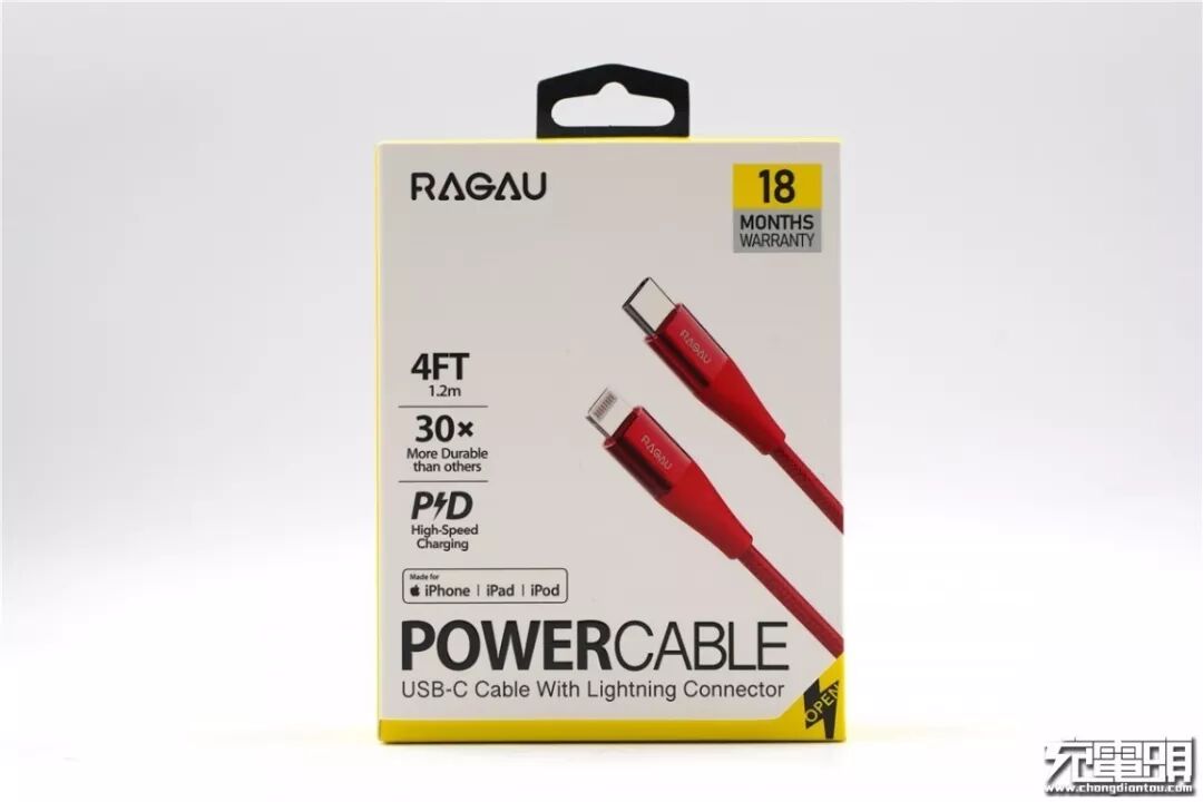 众所周知,新款iPhone手机需想获得快速充电功能,除了需要USB-C接口的PD充电器外还需要一根C94 USB-C to Lightning数据线。在今年发布的三款新iPhone中,已经有iPhone 11 Pro、iPhone 11 Pro Max两款标配了此类线缆。虽说苹果为手机标配快充线缆已经是一项“进步”,但用苹果用户应该知道原装线材并不太耐用,开裂爆皮是常用的事。正因这样,许多第三方MFi品牌推出了质量更优秀的编织线,RAGAU便是其中一家。