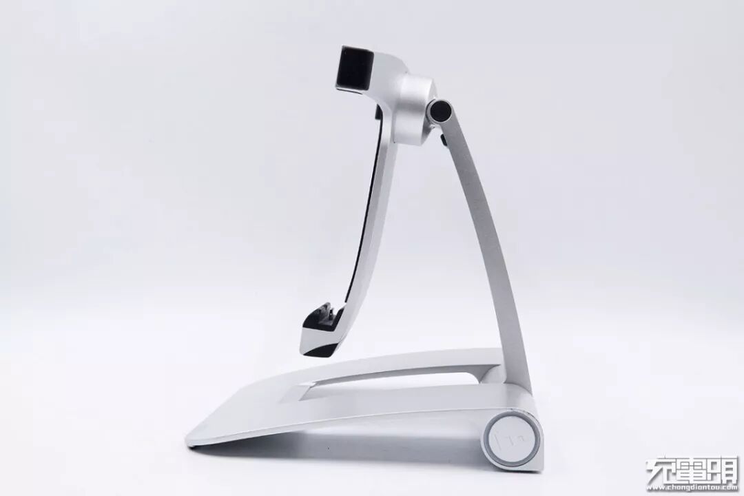这款mophie powerstand iPad支架全身流线型设计,机身壳使用铝质材料且进行阳极氧化处理呈银灰色,表面采用喷砂工艺使手感更细腻。三脚支架上均有保护软垫,提供绝佳的保护,而且Lightning端子为原装C10D元件,评分达100分。此外配备的充电器还能给iPad进行12W充电,满足边充边用的需求。