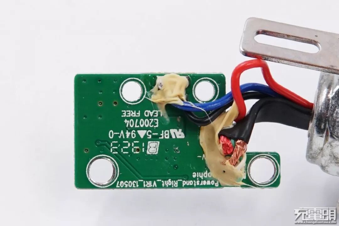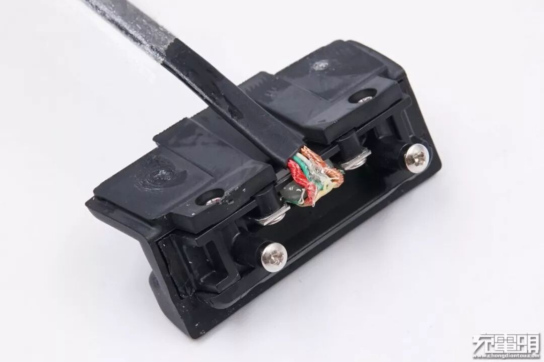 支脚软垫通过两颗螺丝固定在底端,线缆焊接在一块小PCB板上,而小PCB板则使用螺丝固定,多股线缆,经久耐用。