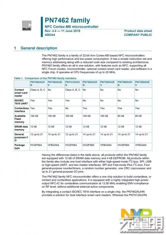 NXP恩智浦PN7362AUEV详细资料。