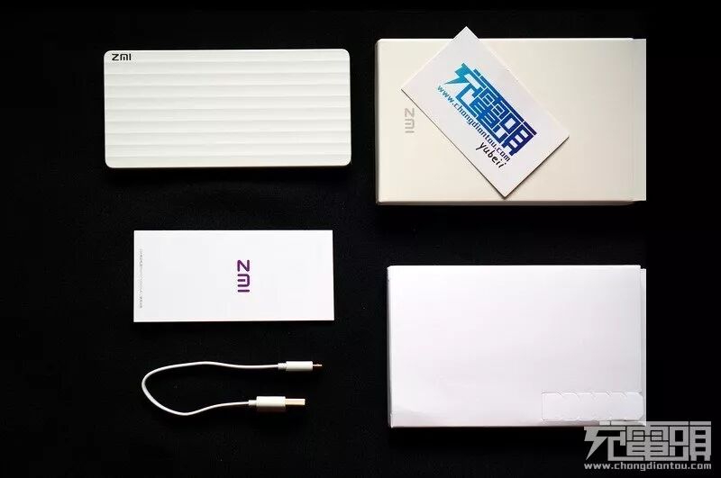 开箱后的全貌,一个电源主体,一条长22厘米的充电线,一本使用说明。整个包装由内到外都以简洁的白色为主,包装上没有过多的图案装饰,均以体现ZMI的品牌LOGO为主。