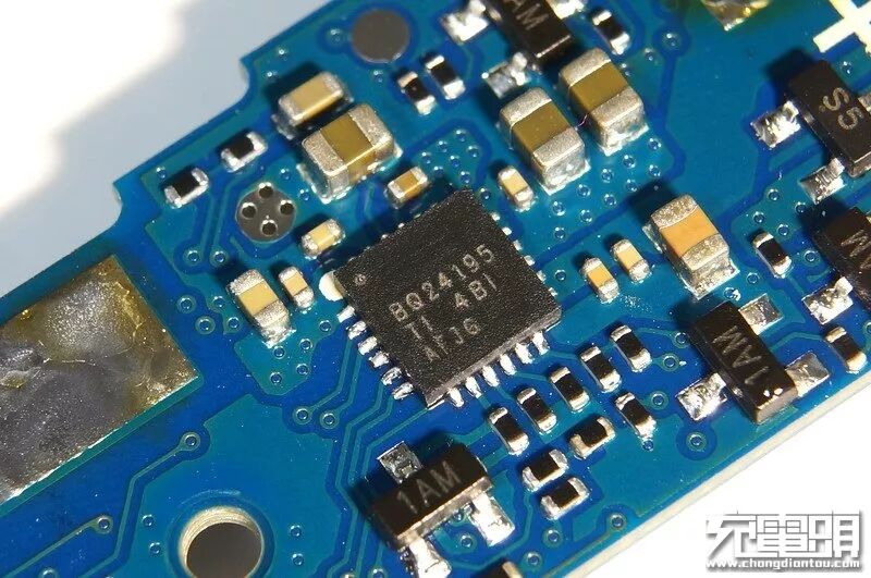 TI BQ24159这颗IC在小米其他移动电源中也有用到。TI BQ24195集成了5V 2.1A充电和放电;电池充电截止电压可调,通吃4.2/4.3/4.35V(锂电)等各类主流锂电池;还能自动调节适配器输入电流;可实现路径管理,支持边充边放;封装为QFN-24,体积小巧仅4x4mm。