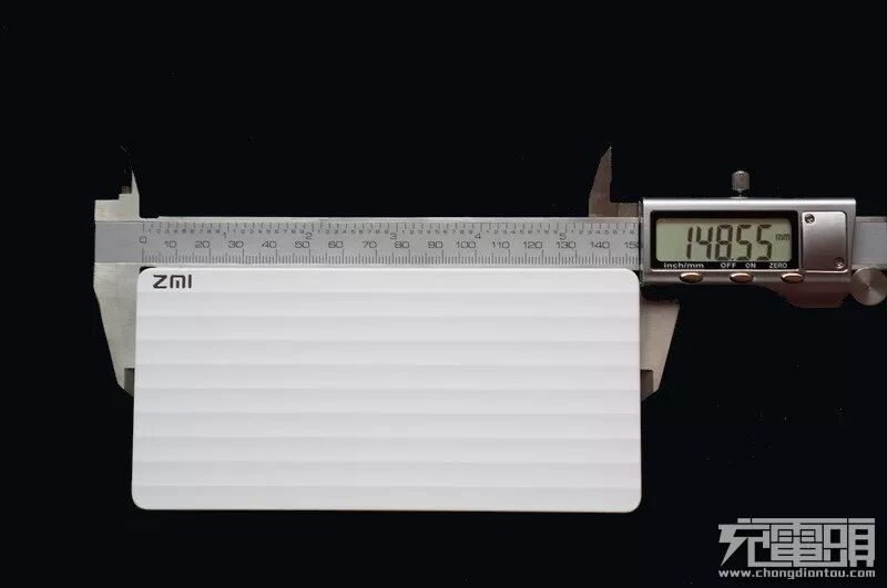 电源表面的ZMI LOGO使用了CNC精雕热熔工艺内嵌到了外壳里面,摸上去有凹凸感,相比普通的丝印、镭雕工艺,做工更加考究。外壳的表面还喷涂了一层薄薄的磨砂UV,手感较佳。电源整体长度为148.55mm。