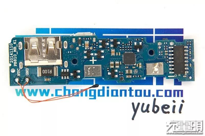 电路板的正面,PCB版本号为20141110。版上的元器件我们都有在之前对小米16000mAh、5000mAh的拆解中见到过。