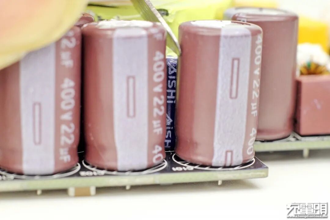 5颗初级滤波电解电容规格一样,均为400V 22μF,五颗并联工作,总计110μF。