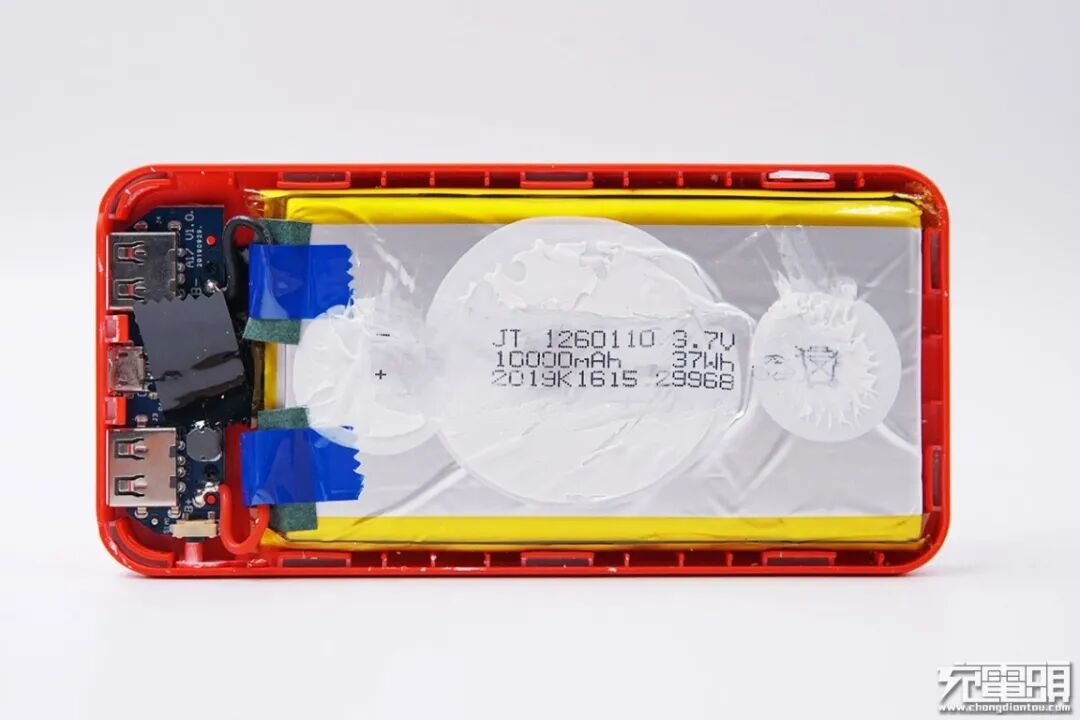 将电芯上的硅胶清理掉,可以看到相关的基本信息,容量10000mAh/37Wh,2019年生产。