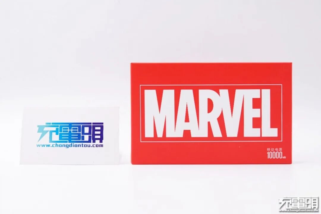 产品采用红色外包装盒,颜色鲜艳设计简约,包装盒正面印有大大的MARVEL字样,右下角印有移动电源容量。