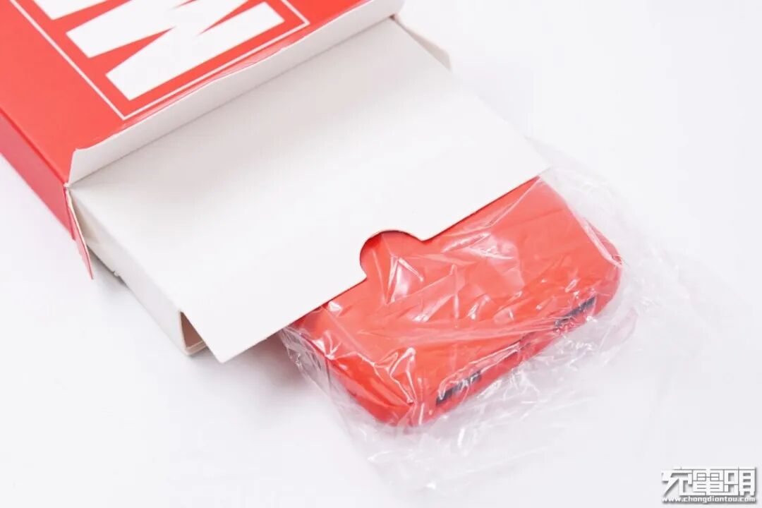 打开包装,内部有纸盒对产品进行固定保护,移动电源外套有透明塑料袋。
