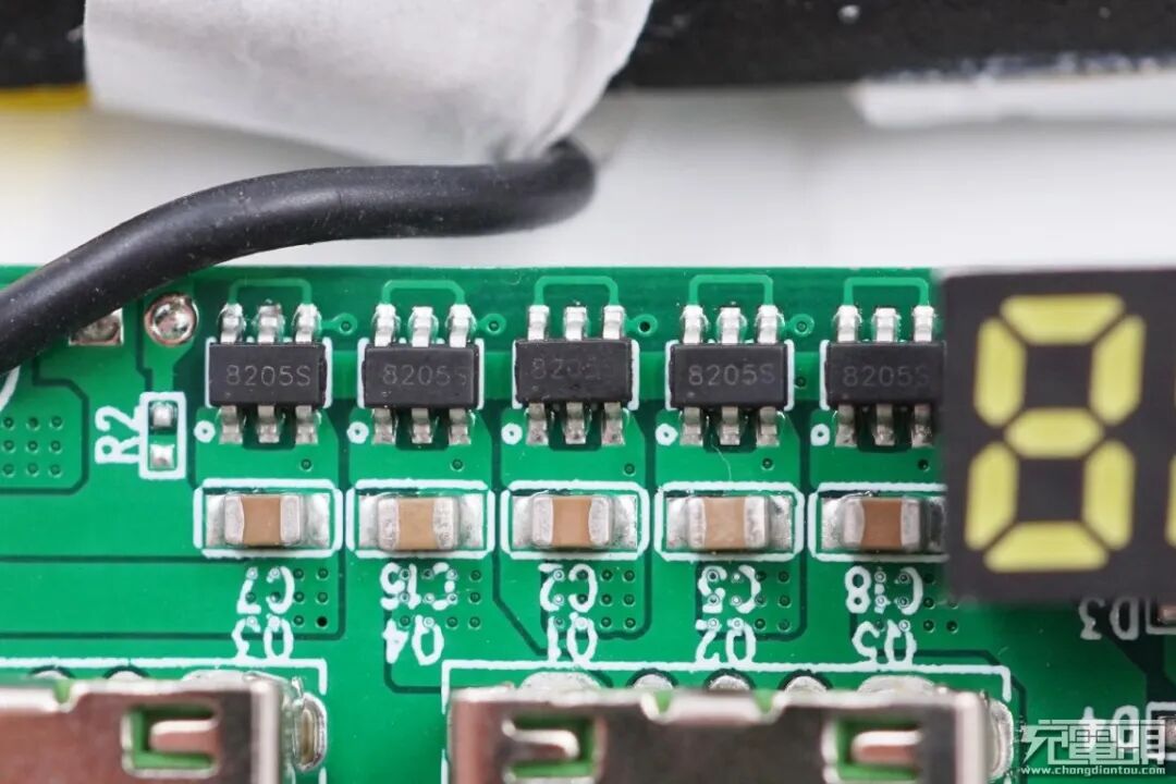 一排五颗8205S MOS管,用于分配接口供电。