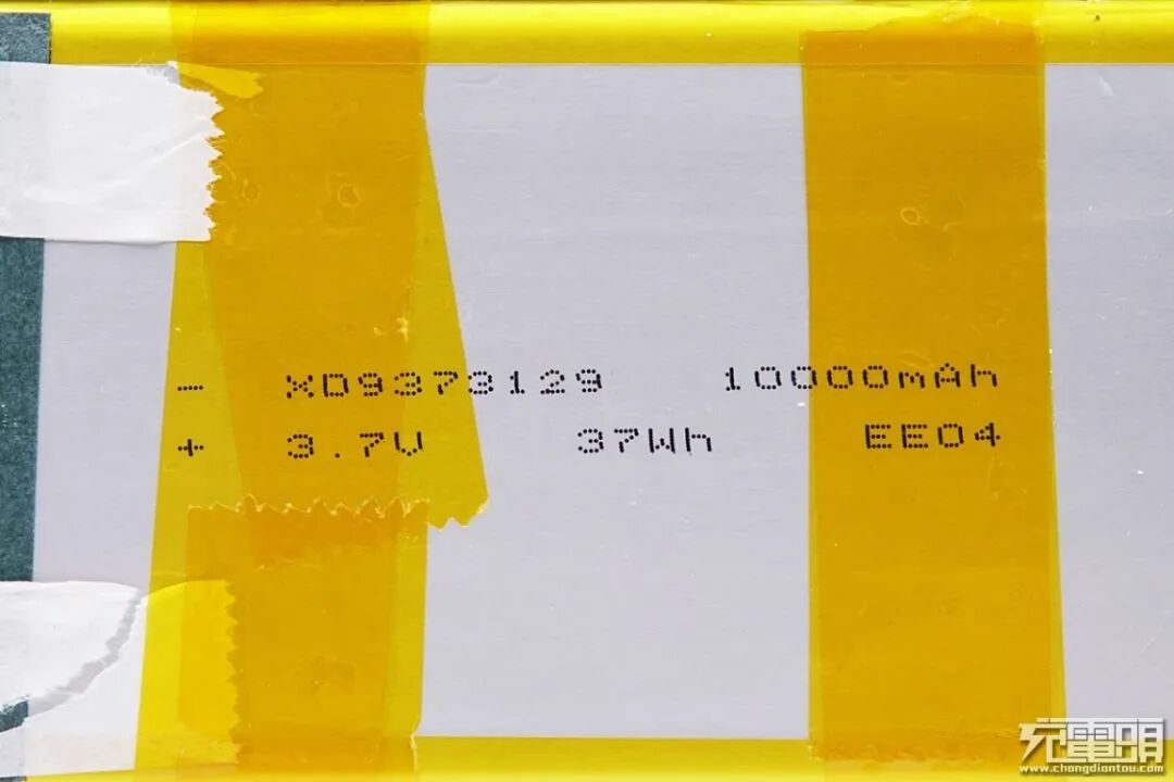 电芯中间印有信息:10000mAh,3.7V,37Wh。