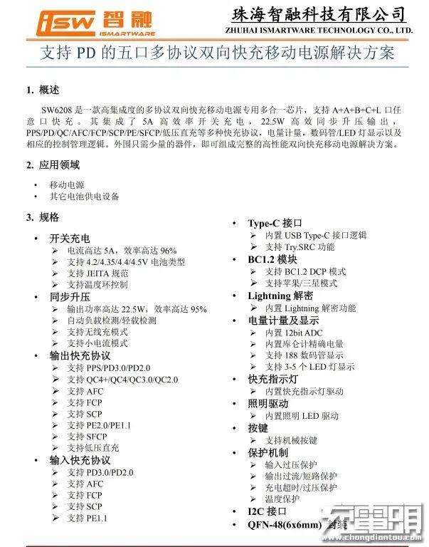智融SW6208规格资料。