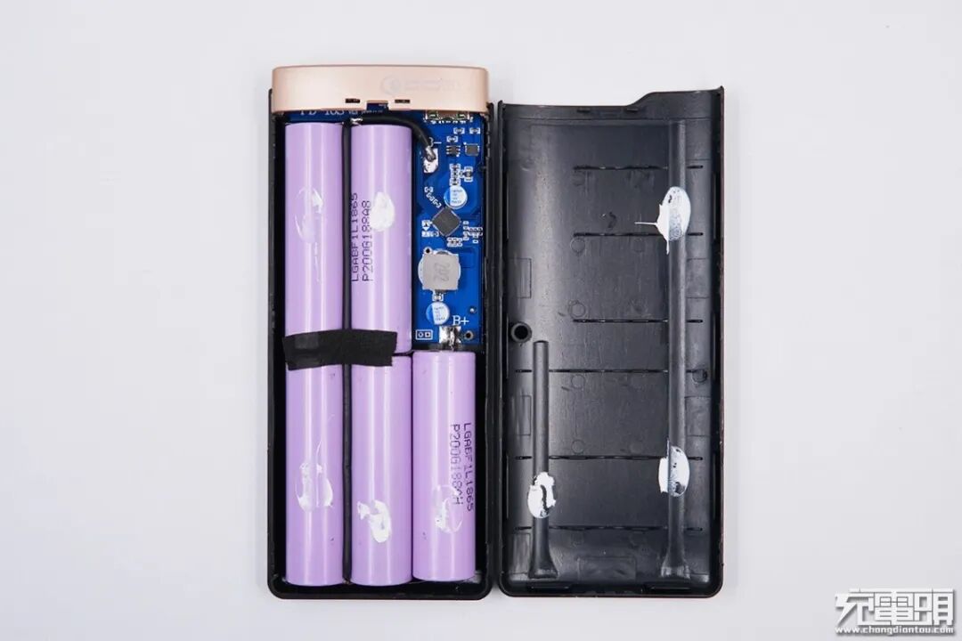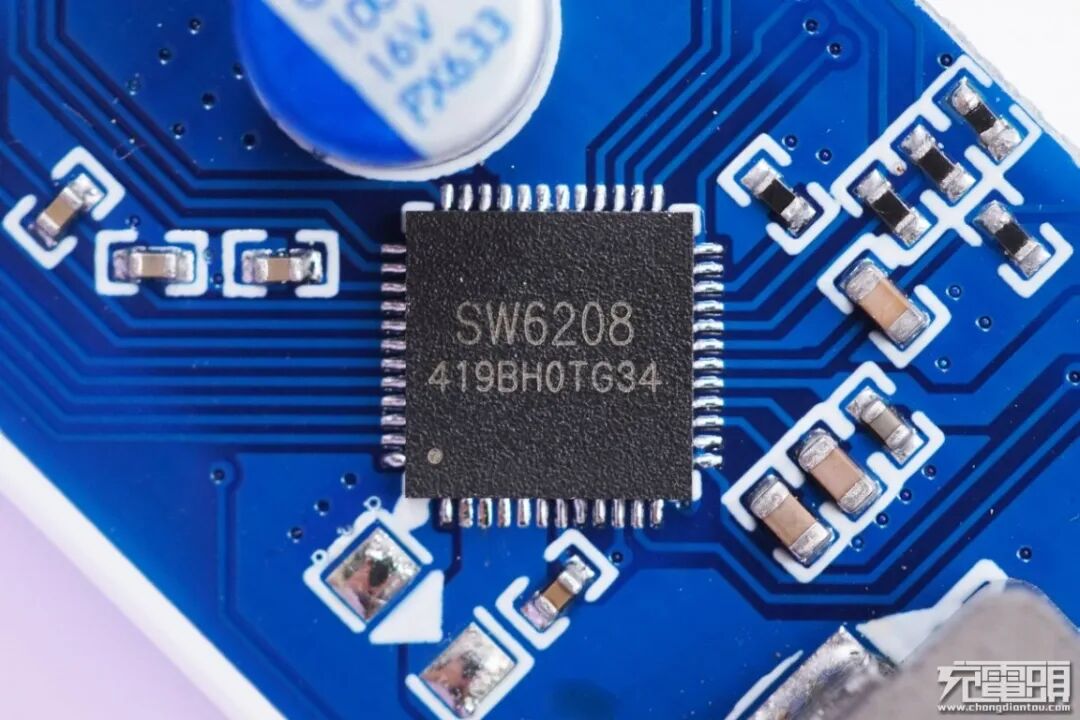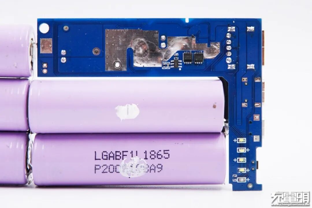 充电头网通过拆解发现,电源内部采用智融SW6208方案,该方案是一款高集成度的多协议双向快充移动电源专用多合一芯片,支持多种快充协议,性能强大,极具成本优势。还采用了LG F1L18650电芯,并配有电芯保护IC和MOS管,用料扎实。