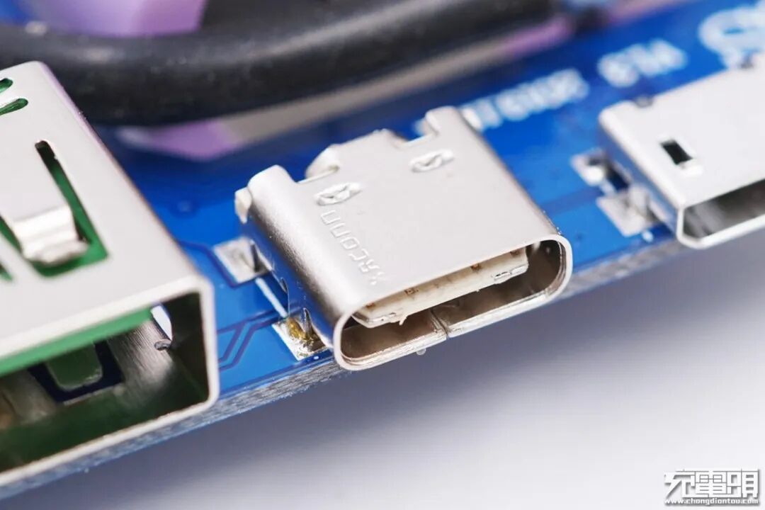 USB-C母座过孔焊接,金属外壳上凹印KRCONN字样,来自深圳市精睿兴业科技有限公司。