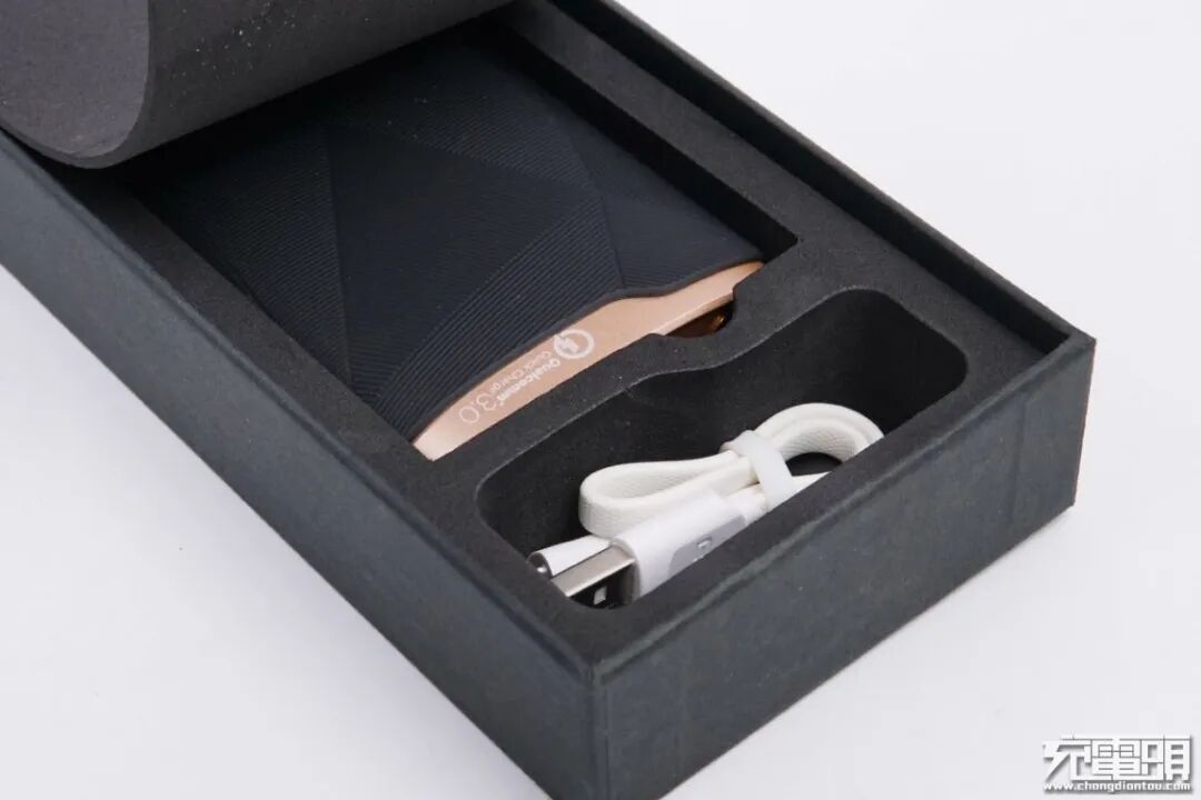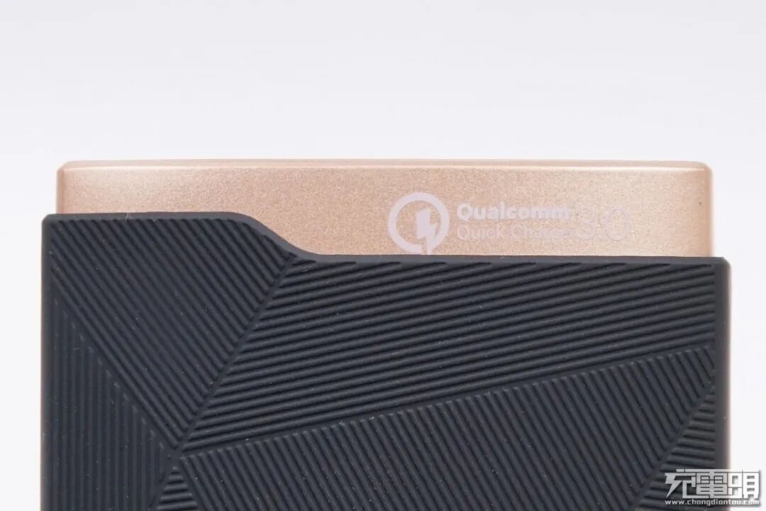 背面则镭雕闪电快充标识和Quick Charge3.0字样,也就是说,这款移动电源已经通过了QC3.0认证。