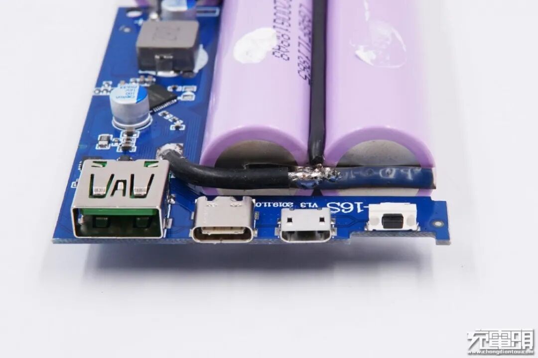五颗电芯的另一极使用焊片贯穿连接在一起,并和PCB板直接焊接。