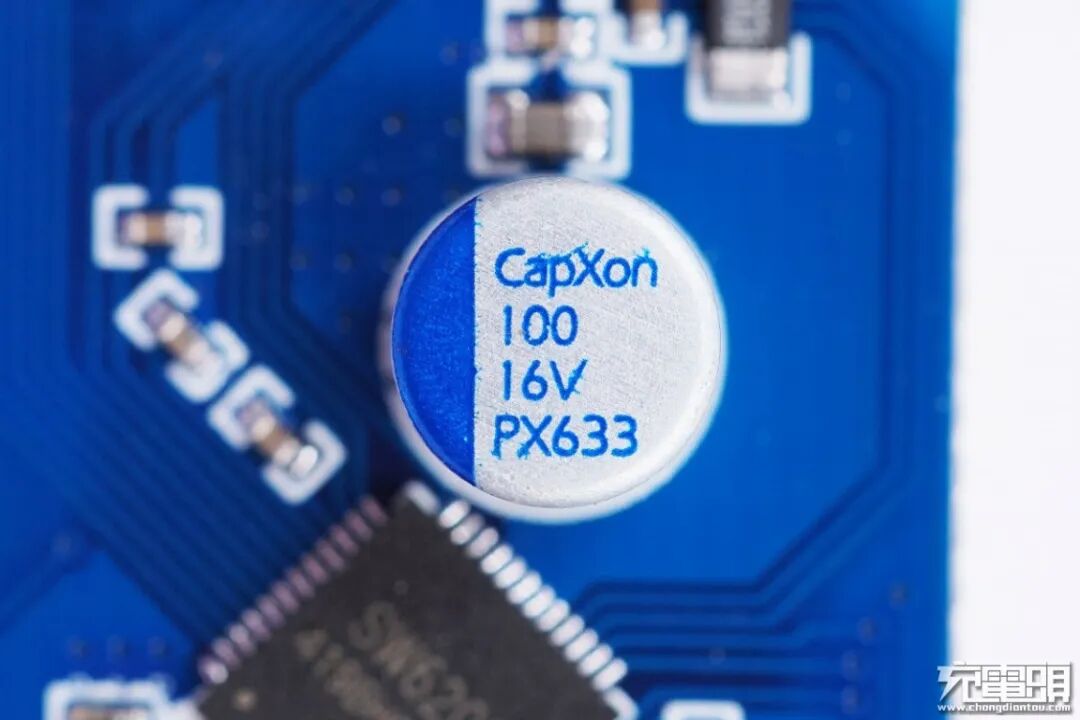 固态电容特写,规格为100μF 16V,由CapXon丰宾提供。
