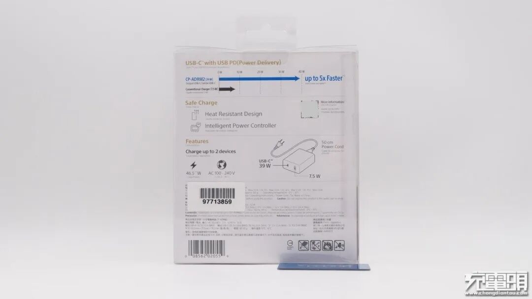 最近充电头网又拿到了SONY索尼一款1A1C双口充电器CP-ADRM2,这款产品的两个接口最大输出功率分别为7.5W和39W,可分别为小型电子产品和手机进行充电。接下来充电头网就对这款充电器进行拆解,看看其用料做工如何。