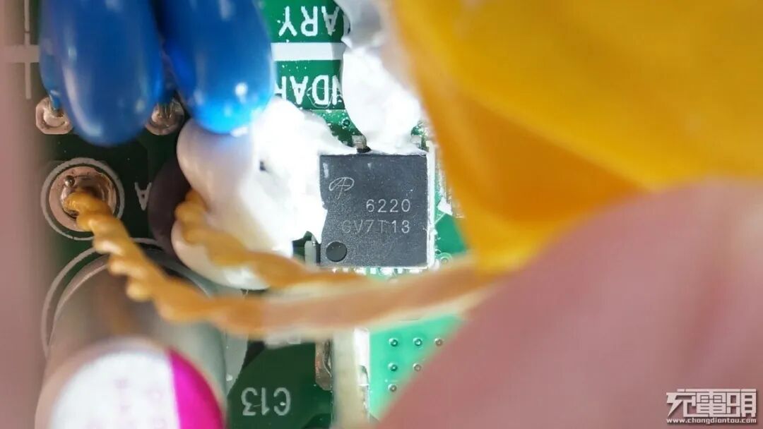 Y电容旁边的次级同步整流MOS管,美国万代AOS AON6220,N-MOS,100V 48A。
