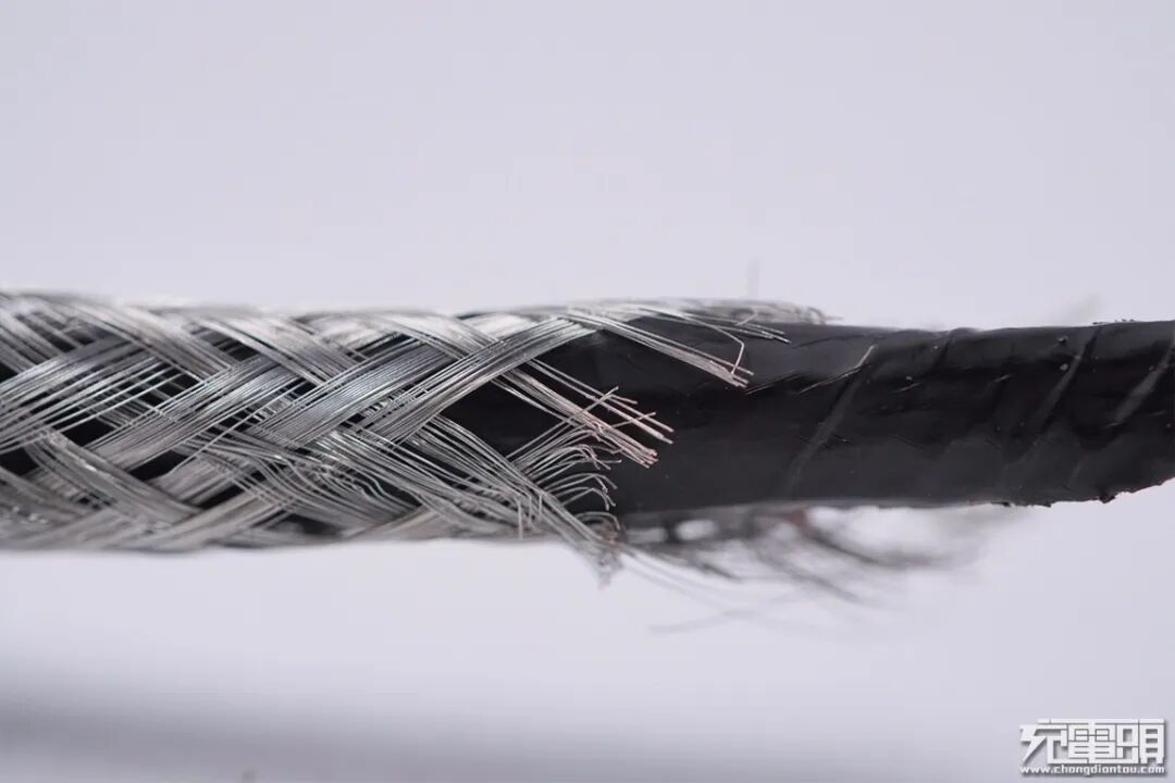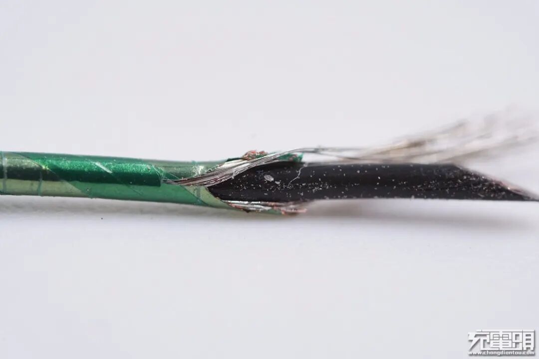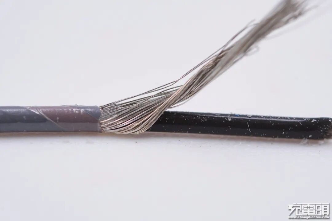 割开一小截塑料外皮,下面是金属屏蔽网,并且交叉编织。