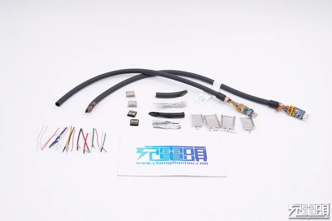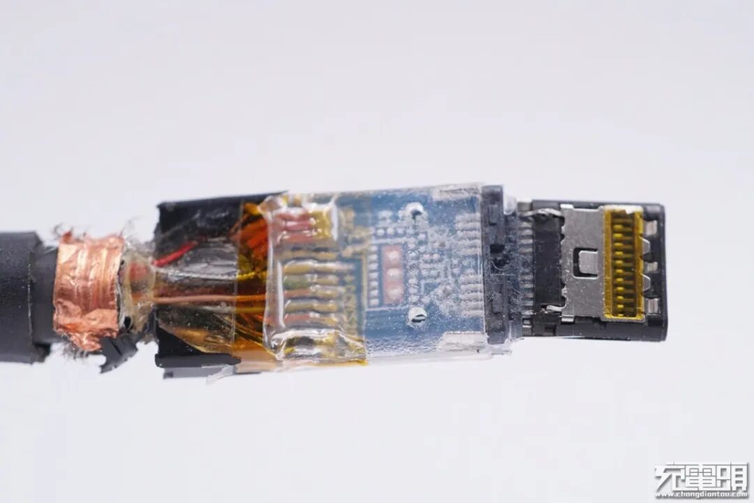 另一端线头拆开后发现设计做工一样,唯一不同的地方是没有焊接E-Marker芯片。