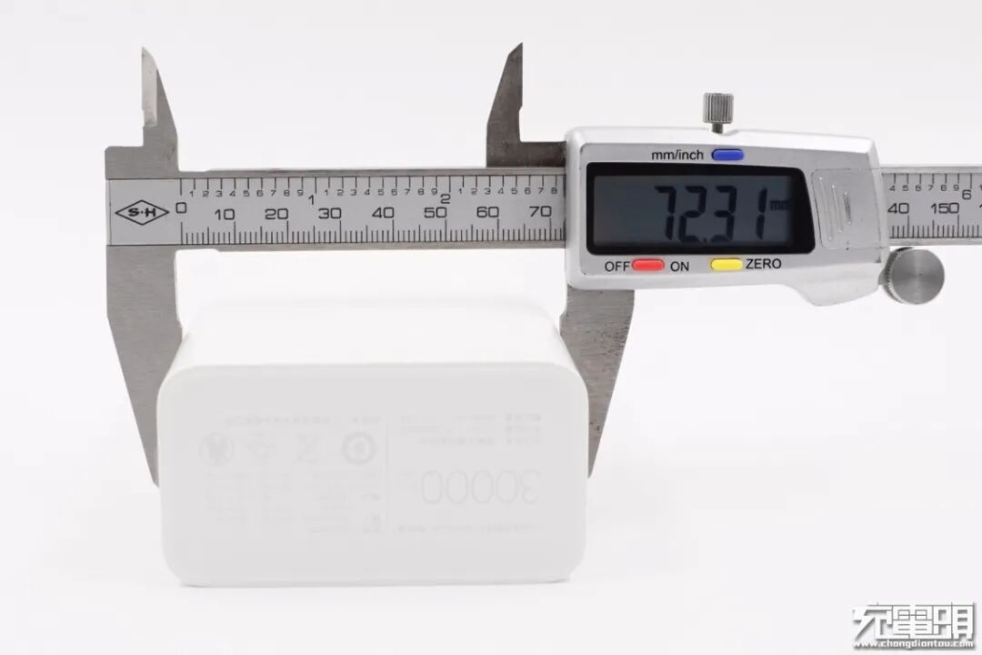 使用游标卡尺实测移动电源长153.33mm。