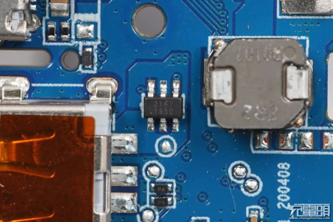 紫米定制的协议芯片,用于支持快充和移动电源控制等功能。