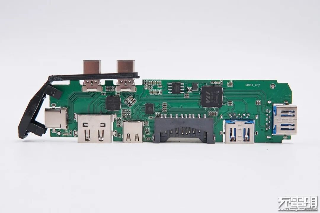 充电头网通过拆解发现,内部使用了谱瑞PS176HDM、创惟GL3224、威锋VL817和VL103等多款品牌芯片,其它知名品牌扩展坞也常见它们的影子,用料扎实。接口母座沉板或置于正反两面焊接,以降低产品厚底,使机身更加小巧精致,全铝合金外壳使得产品更加耐用。