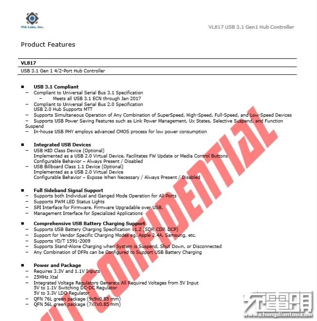 USB芯片采用威锋电子VL817-Q7。