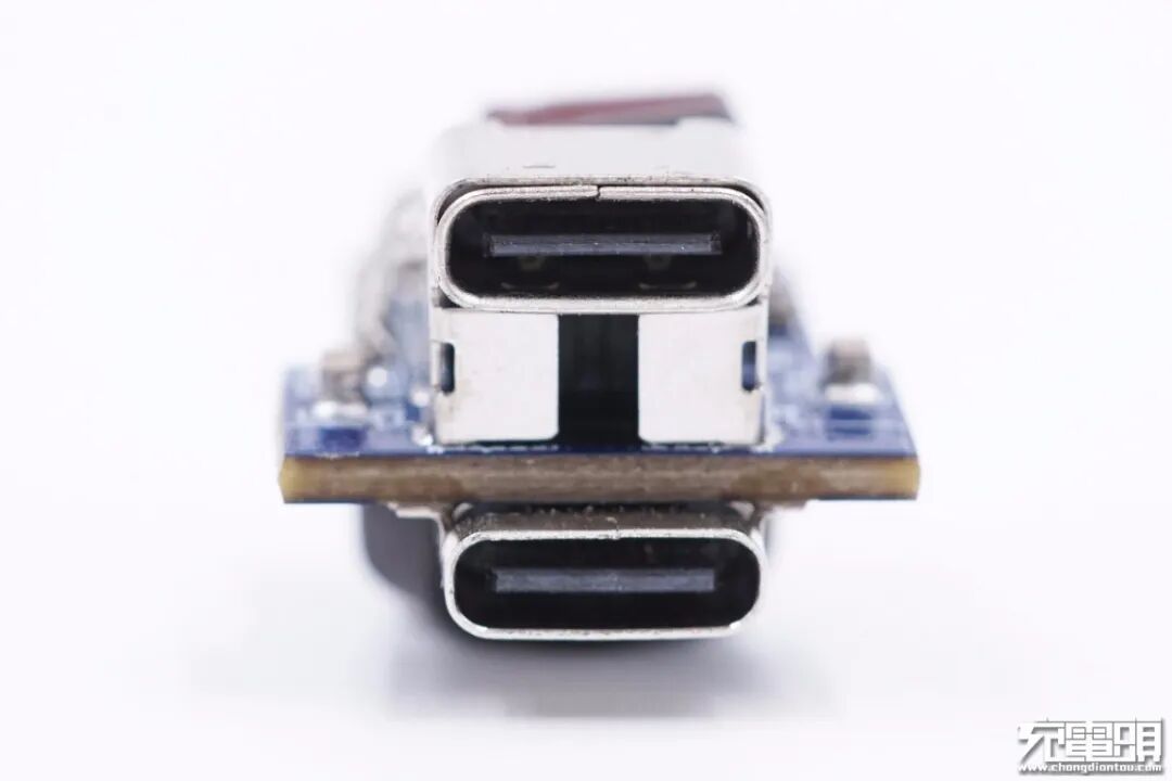 两个C口分别焊接在板子两面,节省空间减小车充体积。