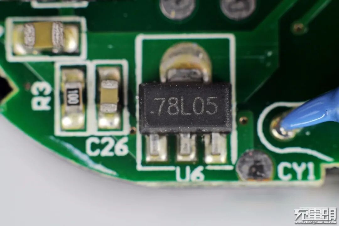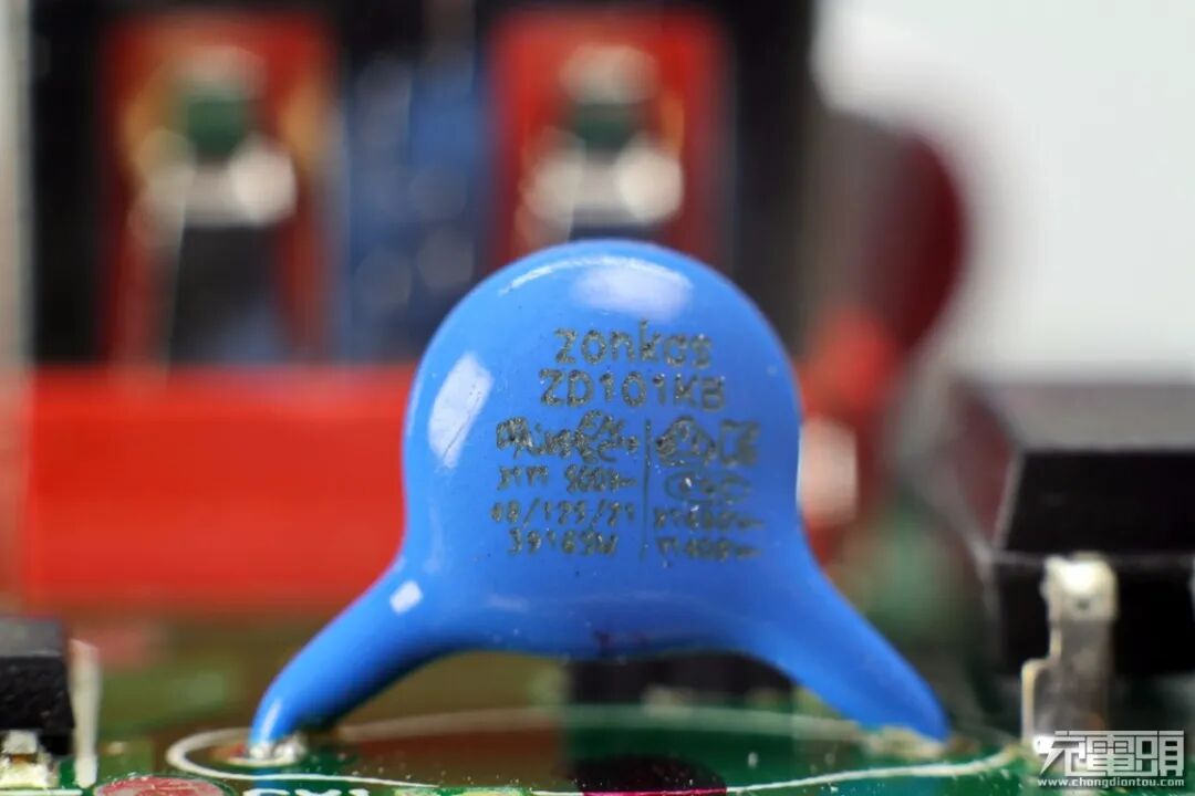 输出抗干扰蓝色Y电容特写。