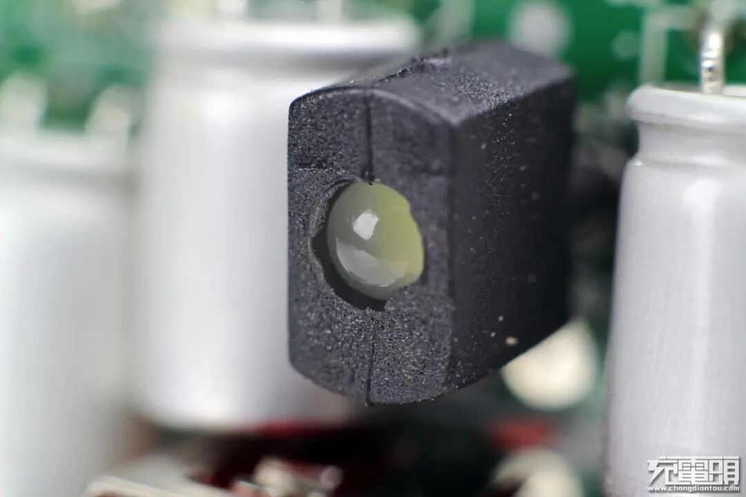LED指示灯特写,外套塑料罩防止漏光。