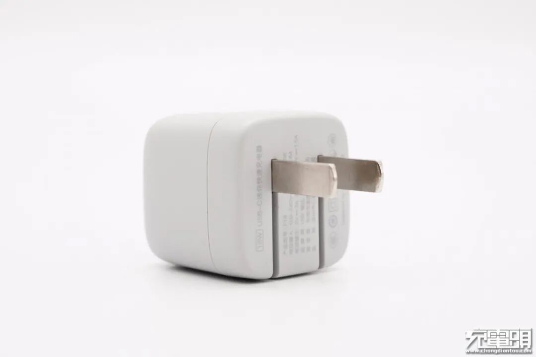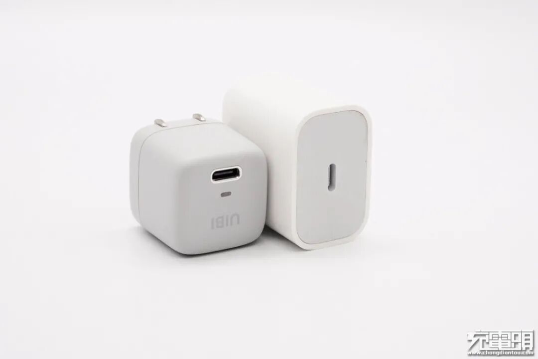 和苹果18W充电器直观对比,外观设计更加精致,体积优势明显。