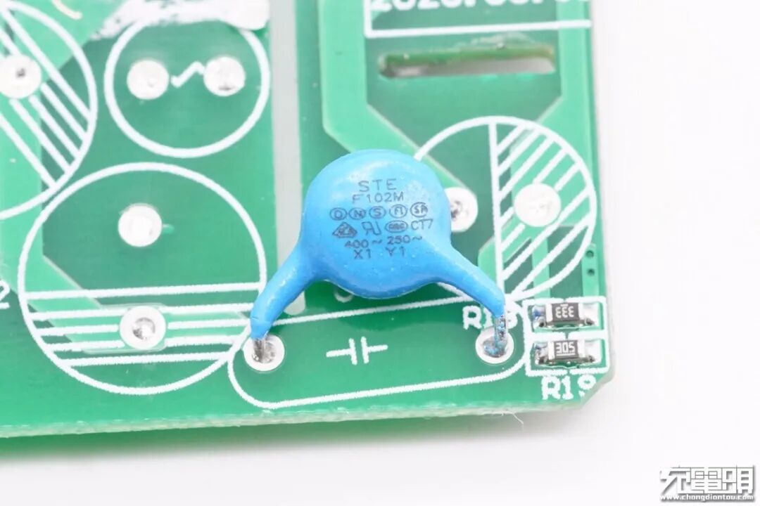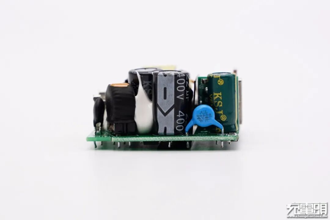 经过对充电器电路板观察分析发现,华科隆22.5W快充充电器采用典型的开关电源宽范围输出,由次级协议芯片控制输出电压的设计架构。下面我们就从输入端开始一一了解各元器件。