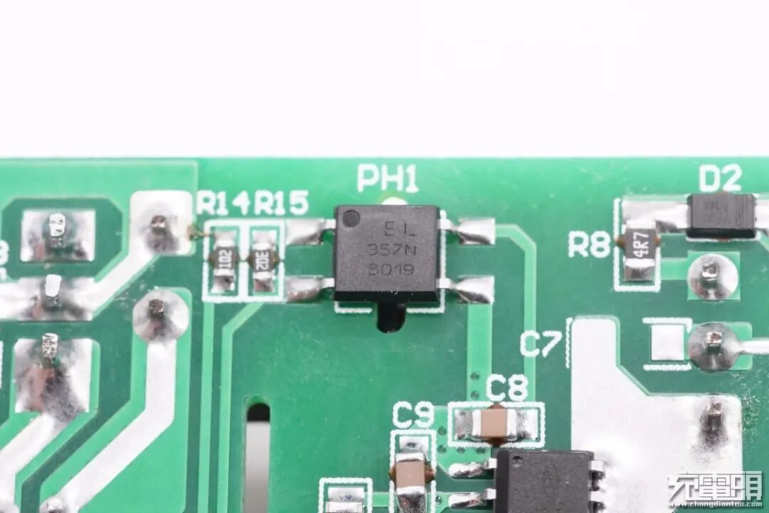 亿光EL 357N光耦,横跨在初级和次级之间,用于初级次级通信,反馈调节输出电压。