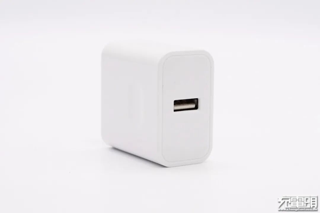 华科隆22.5W快充充电器采用PC阻燃材质白色外壳,机身表面采用亮面烤漆处理工艺,正背面设计有小凹面,整体光滑使用手感好,此外配备固定式国标插脚,更稳更耐用。