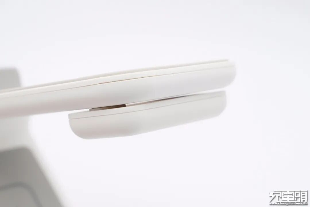 产品采用PC阻燃材质白色外壳,表面哑光处理,具有类肤手感。机身一体式设计,底座以及支撑板上均设有无线充。