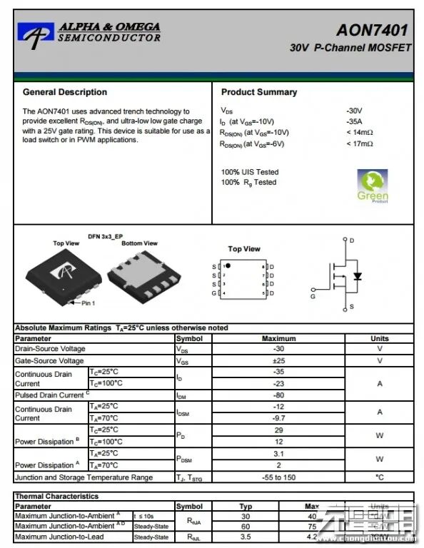 AOS AON7401资料信息。