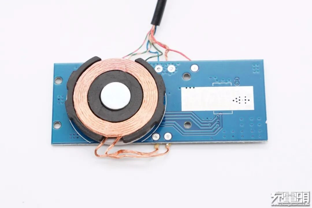 背面设有磁吸无线充电线圈,板子右侧是露铜为功率级芯片散热。
