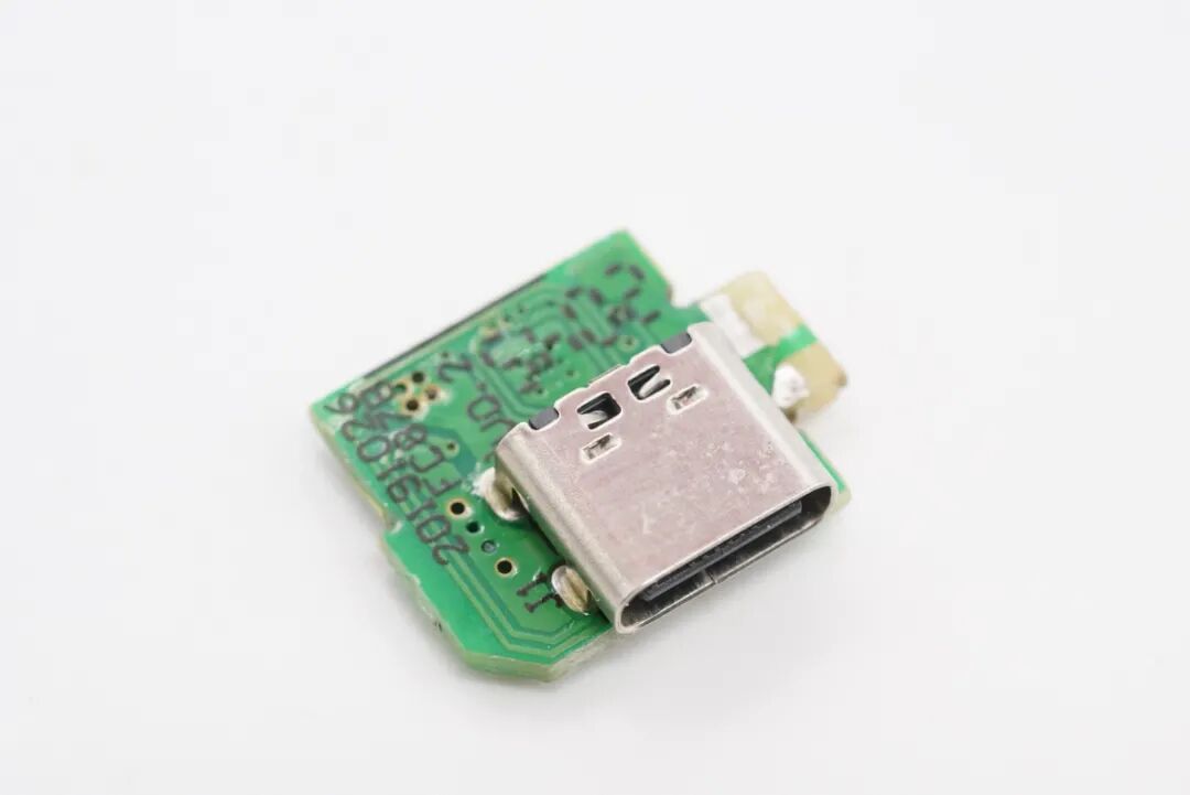USB-C母座特写,过孔焊接,黑色胶芯不露铜。