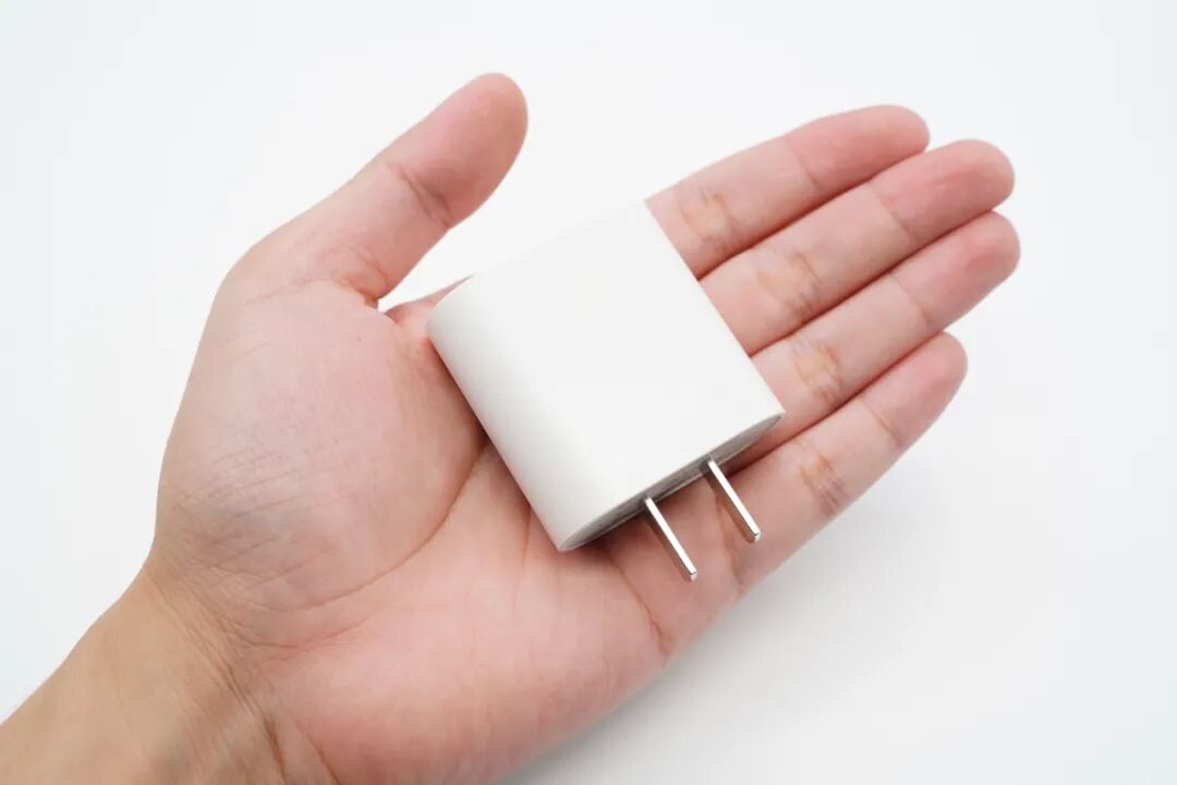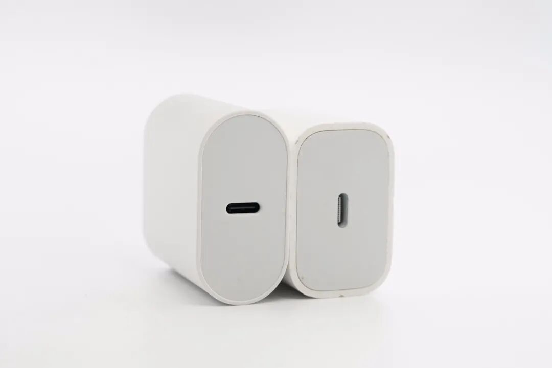 和苹果20W充电器大小直观对比,坤兴这款充电器机身要宽一些。