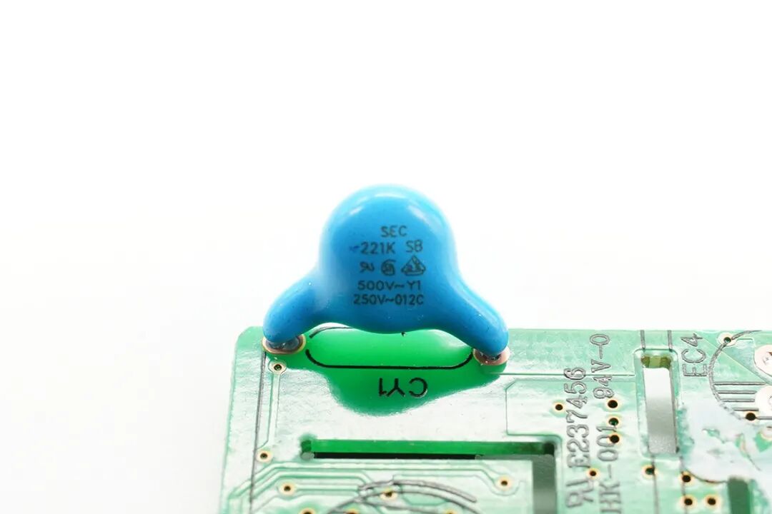 输入端一览,延时保险丝后面有一颗PWM主控芯片供电电容,左侧是NTC浪涌抑制电阻。