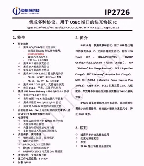 充电头网了解到,英集芯IP2726已经通过了高通QC4+认证,拿到了中国大陆地区第一张QC4+认证证书。