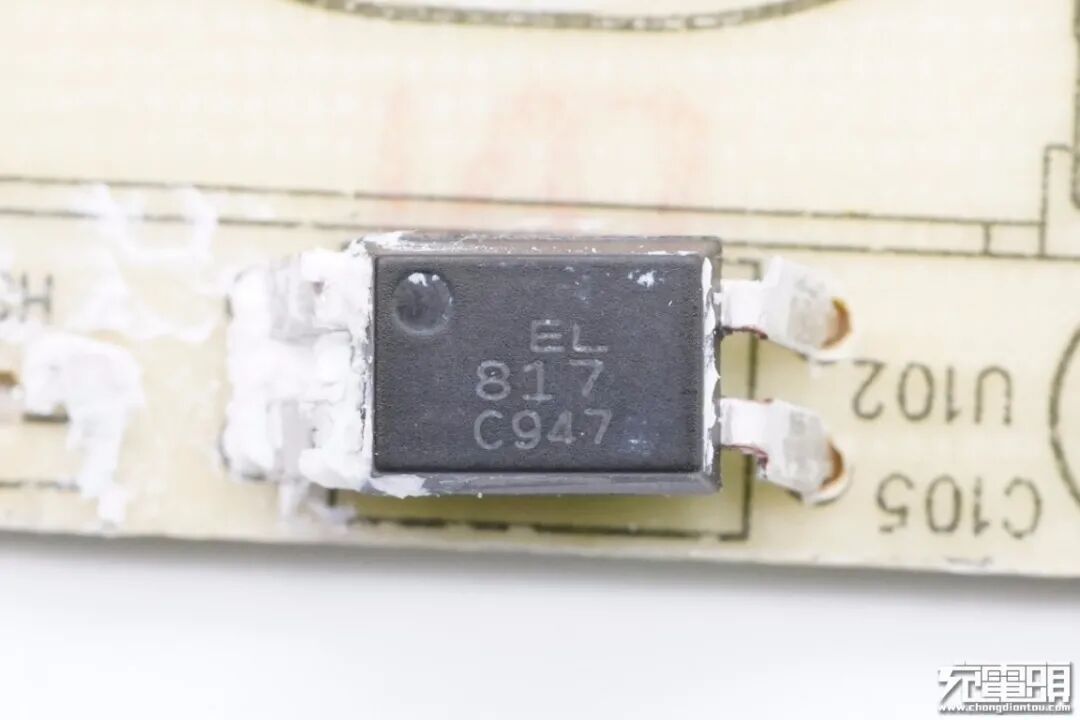 EL 817光耦,横跨在初次级之间,用于初级次级通信,反馈输出电压。