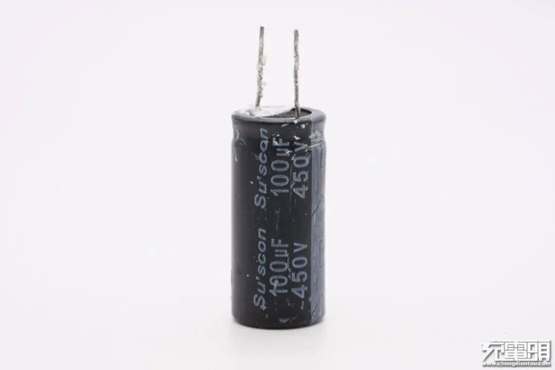 高压滤波电解电容来自台系SUSCON冠坤,规格为450V 100μF,耐热105℃。
