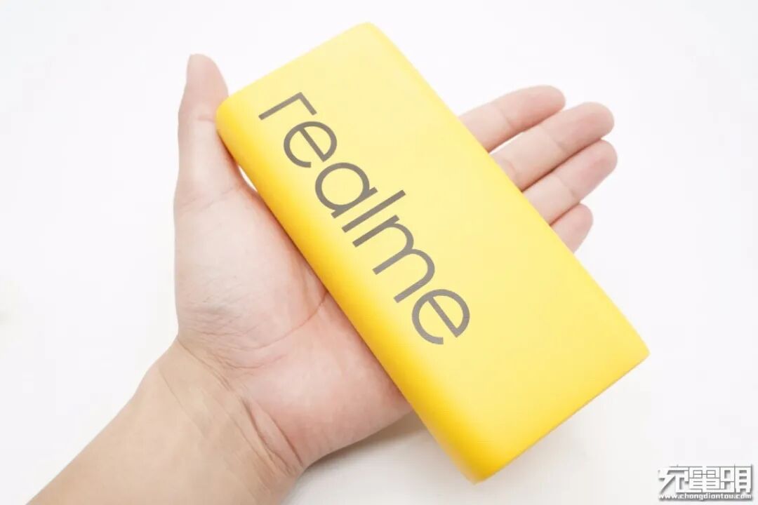 移动电源采用黄色机身加黑色Realme品牌设计,设计简洁同时又凸显Realme品牌,让老用户看上去很亲切。机身两端收缩设计,两侧为半圆弧面,上手持握感好。