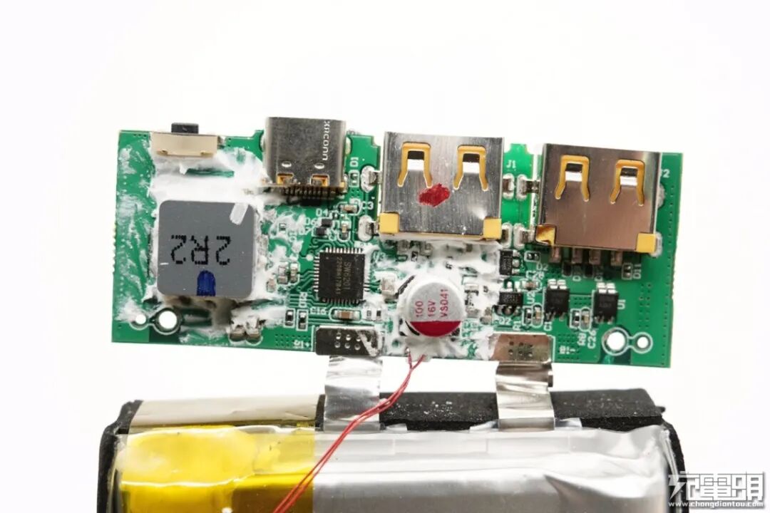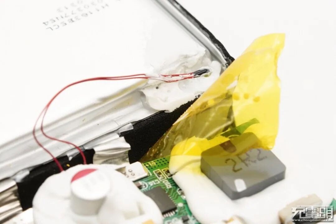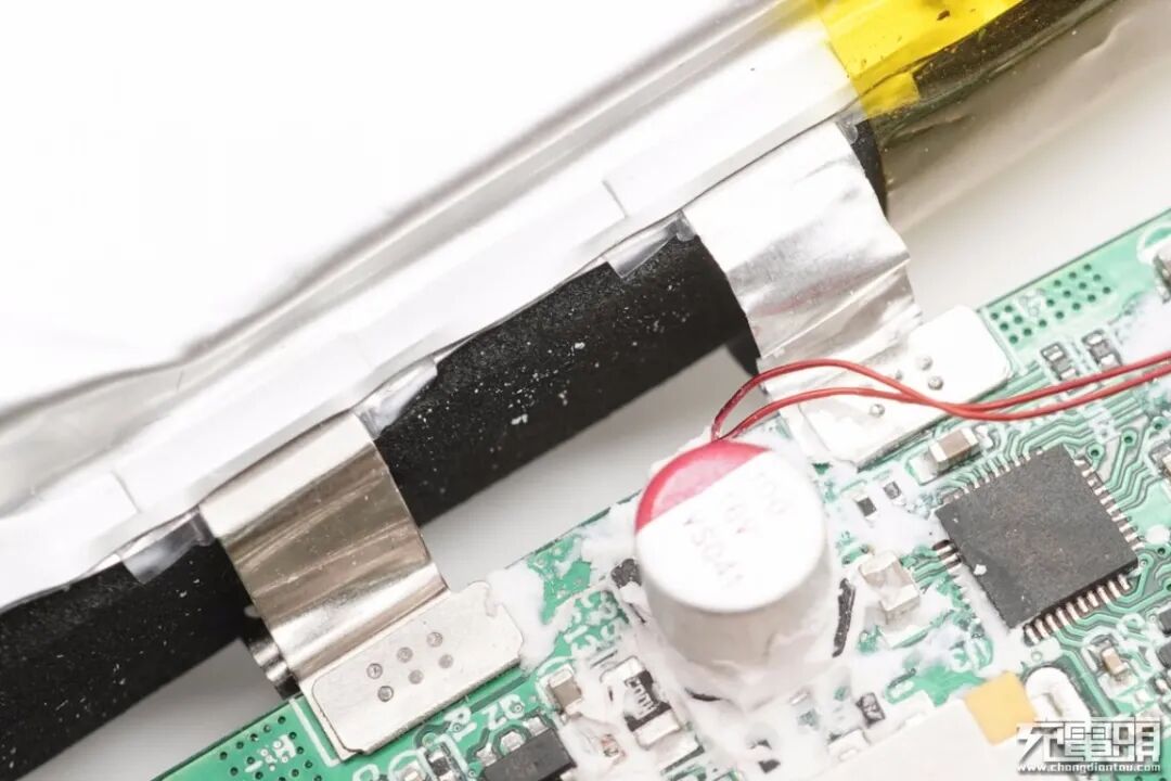 将硅胶清理掉,还能看到移动电源主控芯片等。