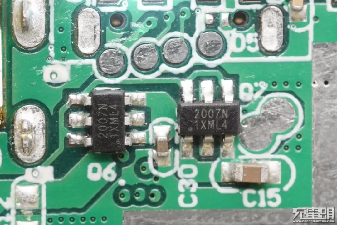 两颗2007N MOS管,用于USB-C口输入输出切换保护。